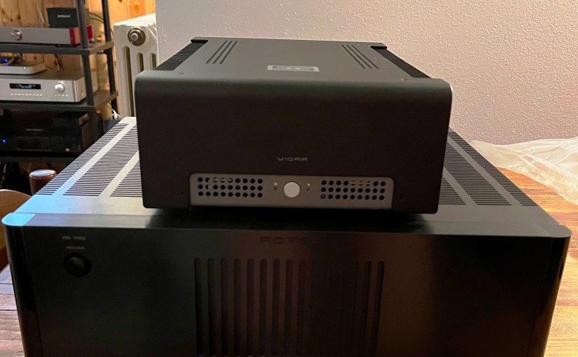 Preciso che nelle operazioni di unboxing del Vidar 2 l’impianto era in funzione così da avere modo di fare un “cambio al volo” e comparare i due finali sul breve periodo. Prima di installare lo Schiit al posto del giapponese ho fatto una mezz’ora di ascolti mirati con il Vidar 2 alimentato così da verificarne il corretto funzionamento a vuoto e fare in modo di preriscaldare un minimo le componenti interne e non metterlo alla prova da “freddo”.